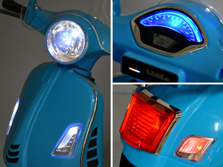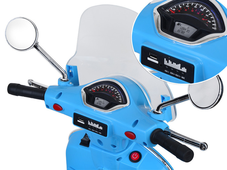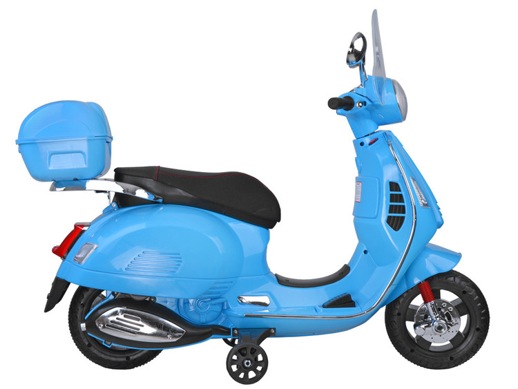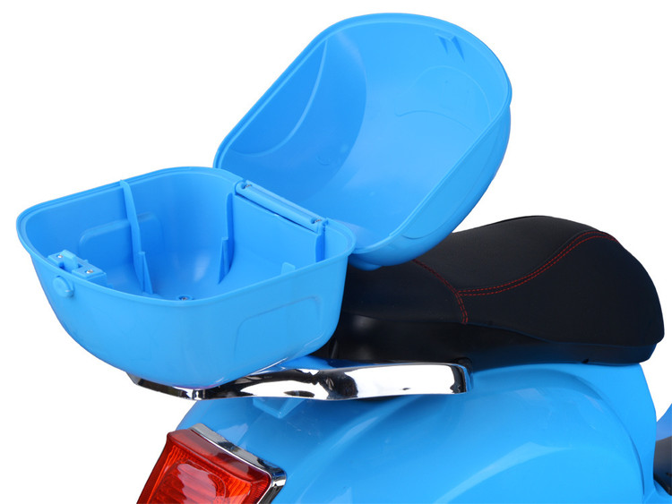 نام محصول: موتور شارژی وسپا رنگ آبی با جلو پنجره و صندوق