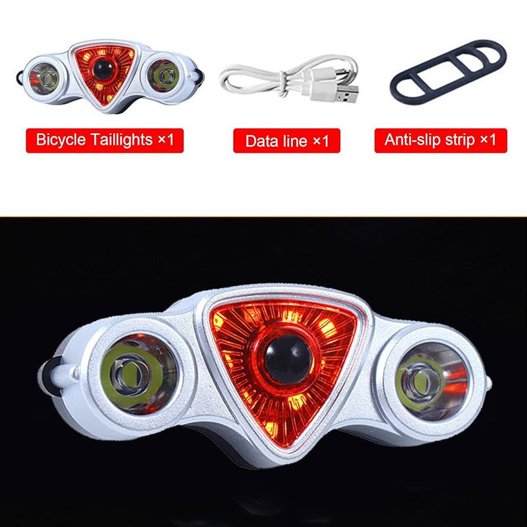 محتویات بسته: چراغ عقب، کابل USB و بند نصب—همه آنچه برای استفاده فوری نیاز دارید.