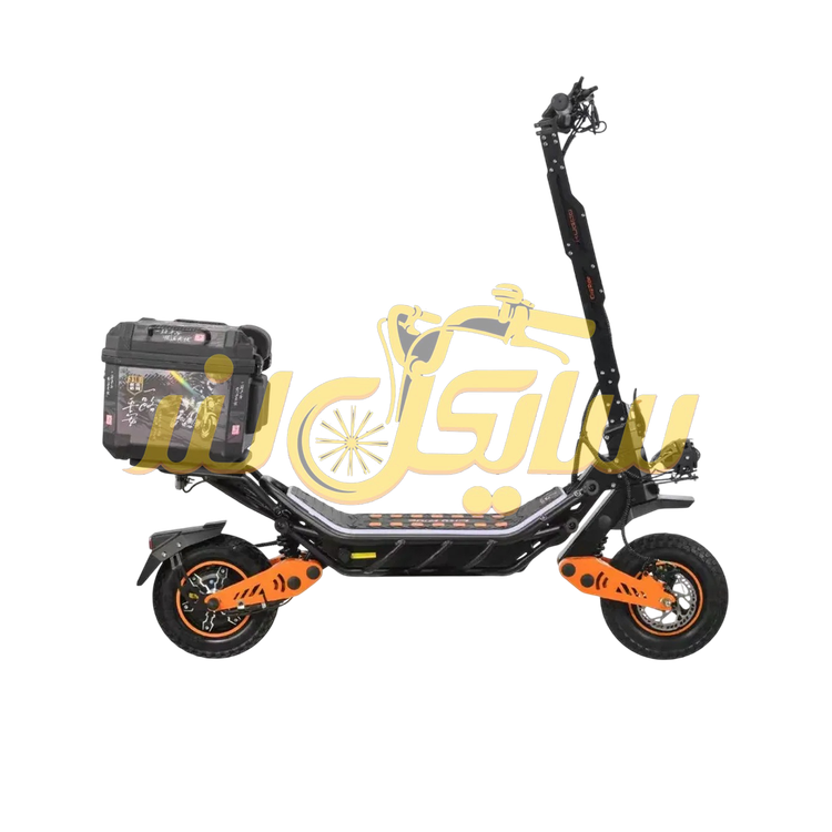 موتور براشلس 1200 وات، شتابگیری سریع و حرکت روان حتی در مسیرهای شیبدار را تضمین میکند. با حداکثر سرعت 85 کیلومتر بر ساعت و باتری 48V/18.2Ah، این اسکوتر تا 55 کیلومتر را با یک بار شارژ طی میکند.
