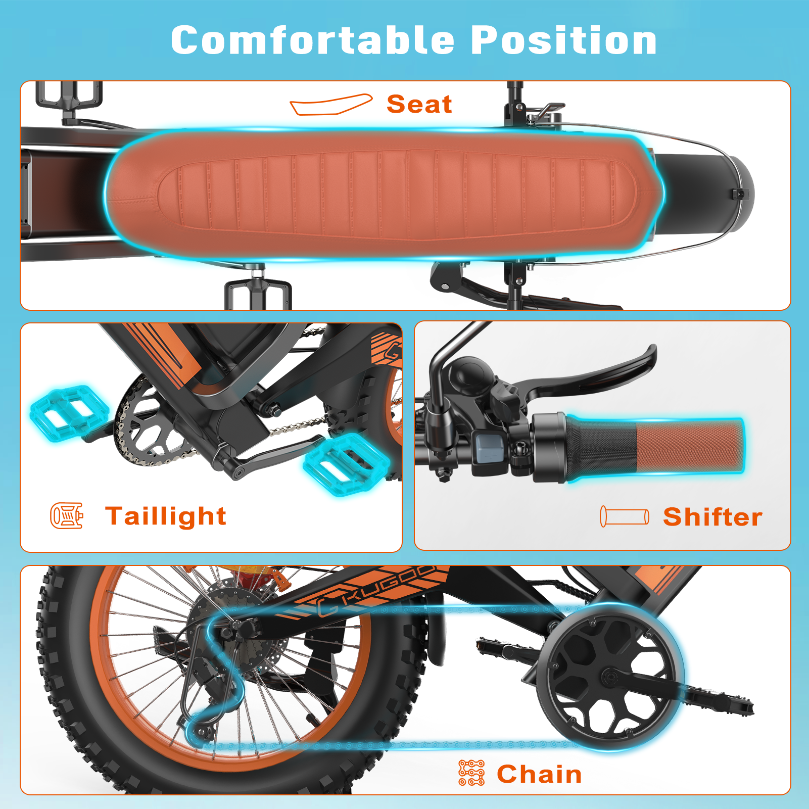 یکی از مهمترین فاکتورها در انتخاب دوچرخه برقی، راحتی سواری در مسیرهای طولانی است. KUGOO V6 با بهرهگیری از: