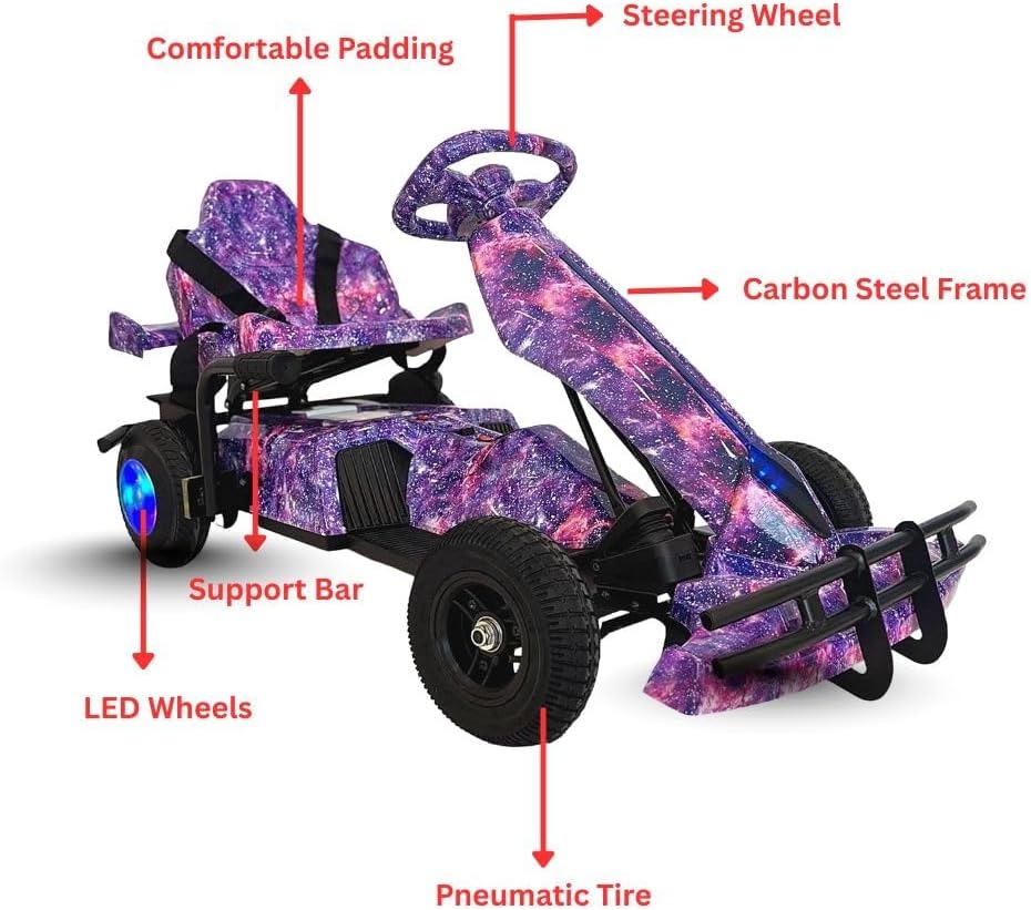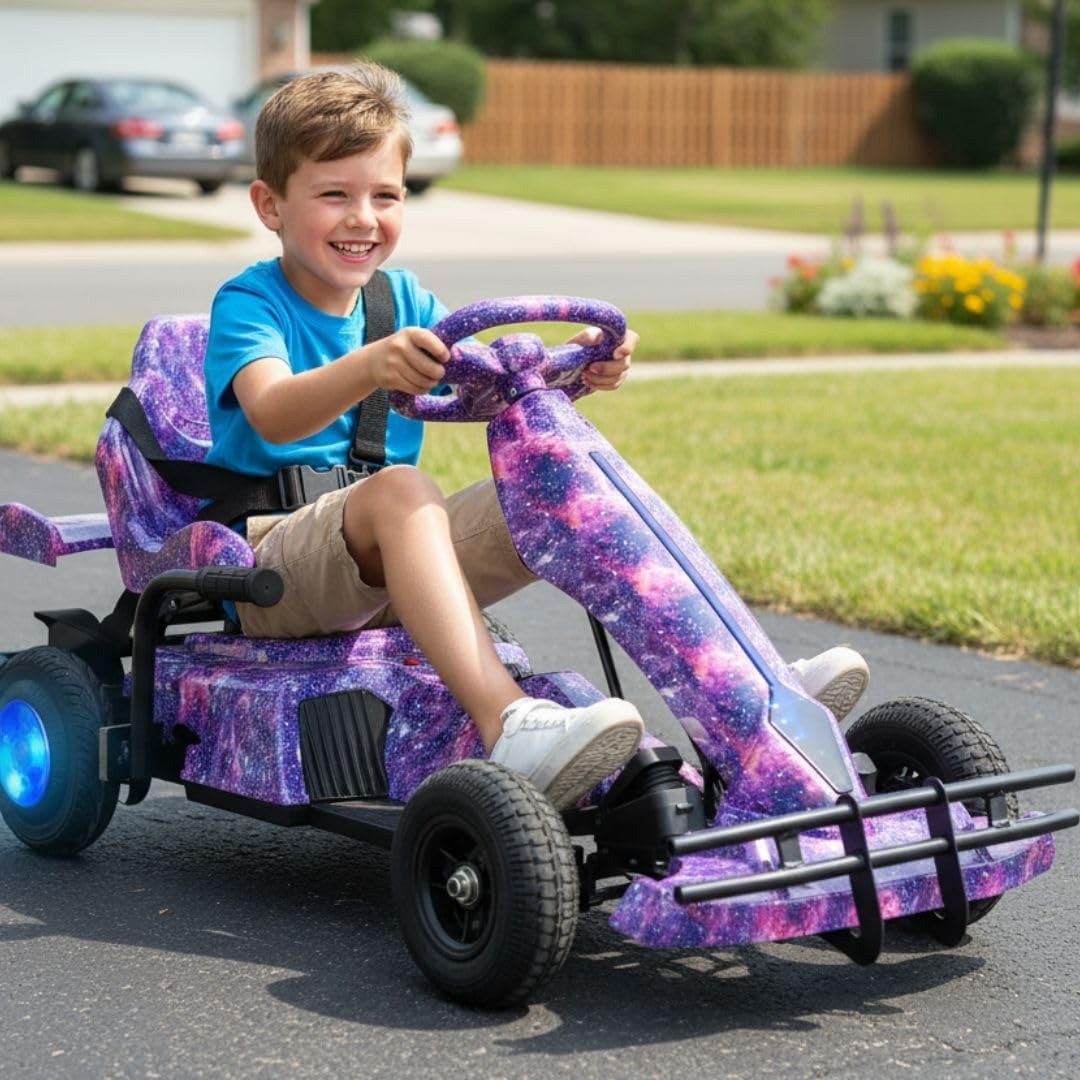 کارتینگ برقی 36 ولت کودکان | طراحی مسابقهای حرفهای با سیستم نورپردازی LED رنگ بنفش کهکشانی