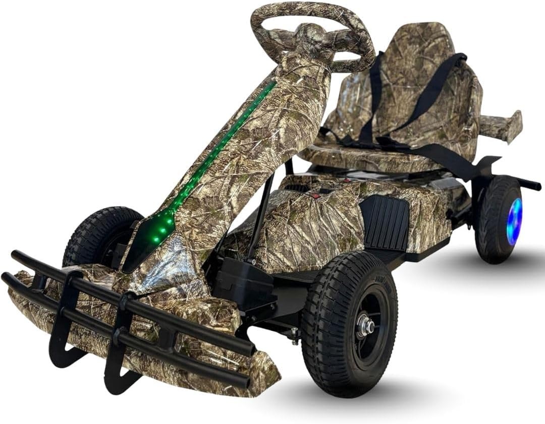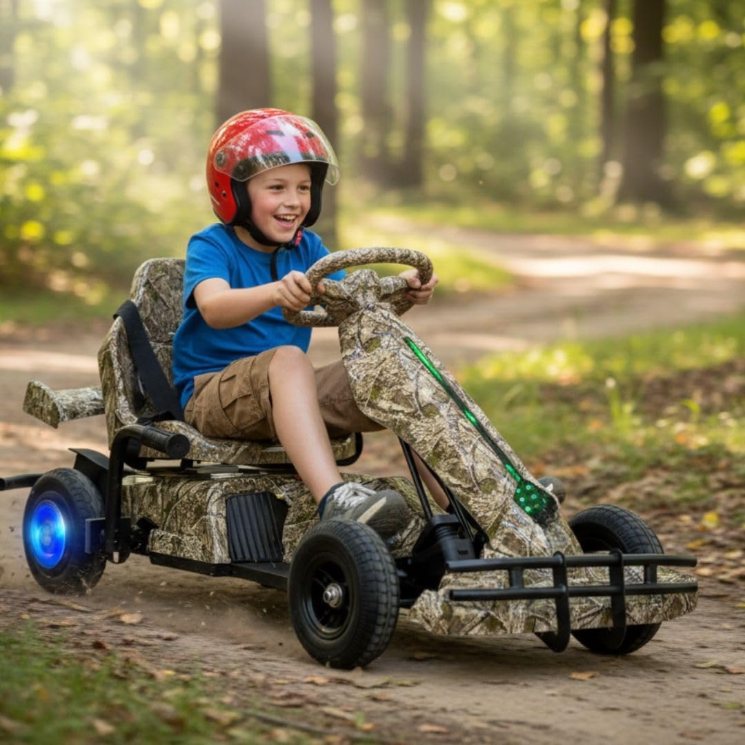 کارتینگ برقی 36 ولت کودکان | طراحی مسابقهای حرفهای با سیستم نورپردازی LED رنگ قهوه ای جنگلی